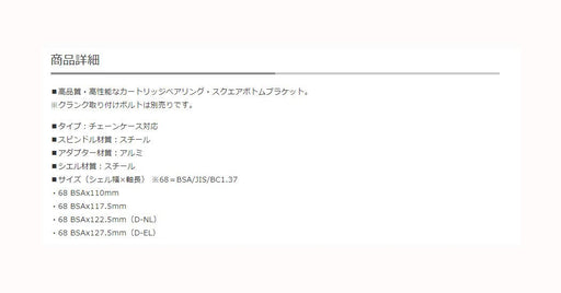 Shimano Cartridge Bottom Bracket Set Dura-Ace Track Bb-7710 Splined Type Axle Bsa 68-109.5Mm Njs-Type Bicycle Bottom Brackets