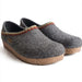 Wool felt upper outlined with a decorative zigzag stitch pattern for added appeal. Warm wool-covered footbed is sure to massage your foot with each and every step.