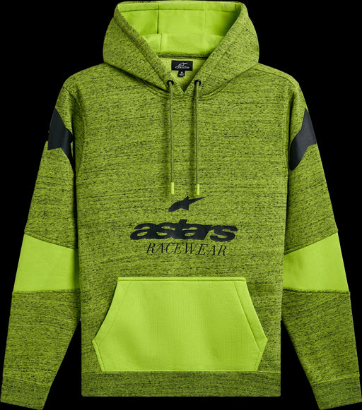 Alpinestars• Garment overdye heather pull over fleece hoodie• Pullover hoodie with body seaming, fabric blocking, kangaroo pocket• Front logo graphic, shoulde...