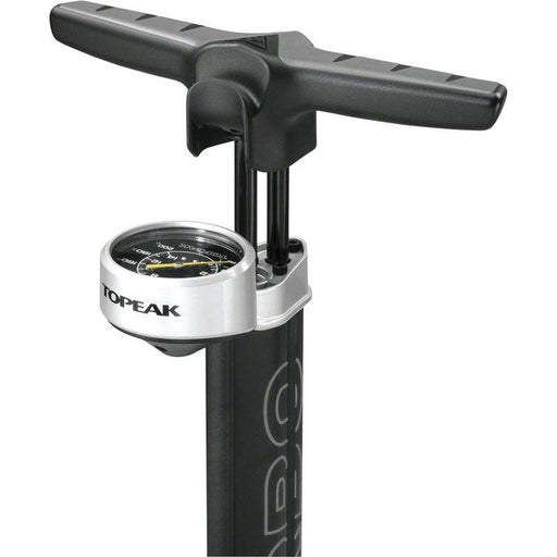 Topeak* The aero-shaped barrel and wide steel base provide stability when pumping and the 3” top mounted gauge is easy to read up to 200 psi (14 bar). * ...