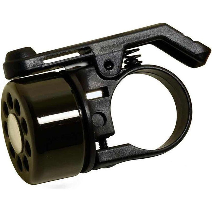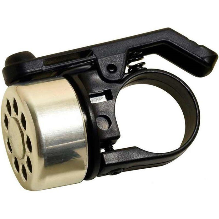 * A new angle on bells* Black and Silver domes are made of an aluminum alloy* Copper and Brass domes are made of Brass* ABS clamp fits handlebars from 21.7 to 26mm diameters