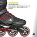 Equipped with 80mm wheels and SG5 bearings, the Zetrablade skates offer a smooth ride on various surfaces, making them ideal for both indoor and outdoor use. The wheels strike a balance between speed and control, giving you the confidence to glide effortlessly while maintaining stability. The durable composite frame also helps absorb road vibrations, enhancing your overall skating experience.