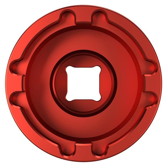 * Machined to match manufacturer specifications and designed to be used with a ½” drive socket or torque wrench for easy installation and removal of e-bike lockrings. * Precision machined aluminum body* Anodized in Wheels MFG red.